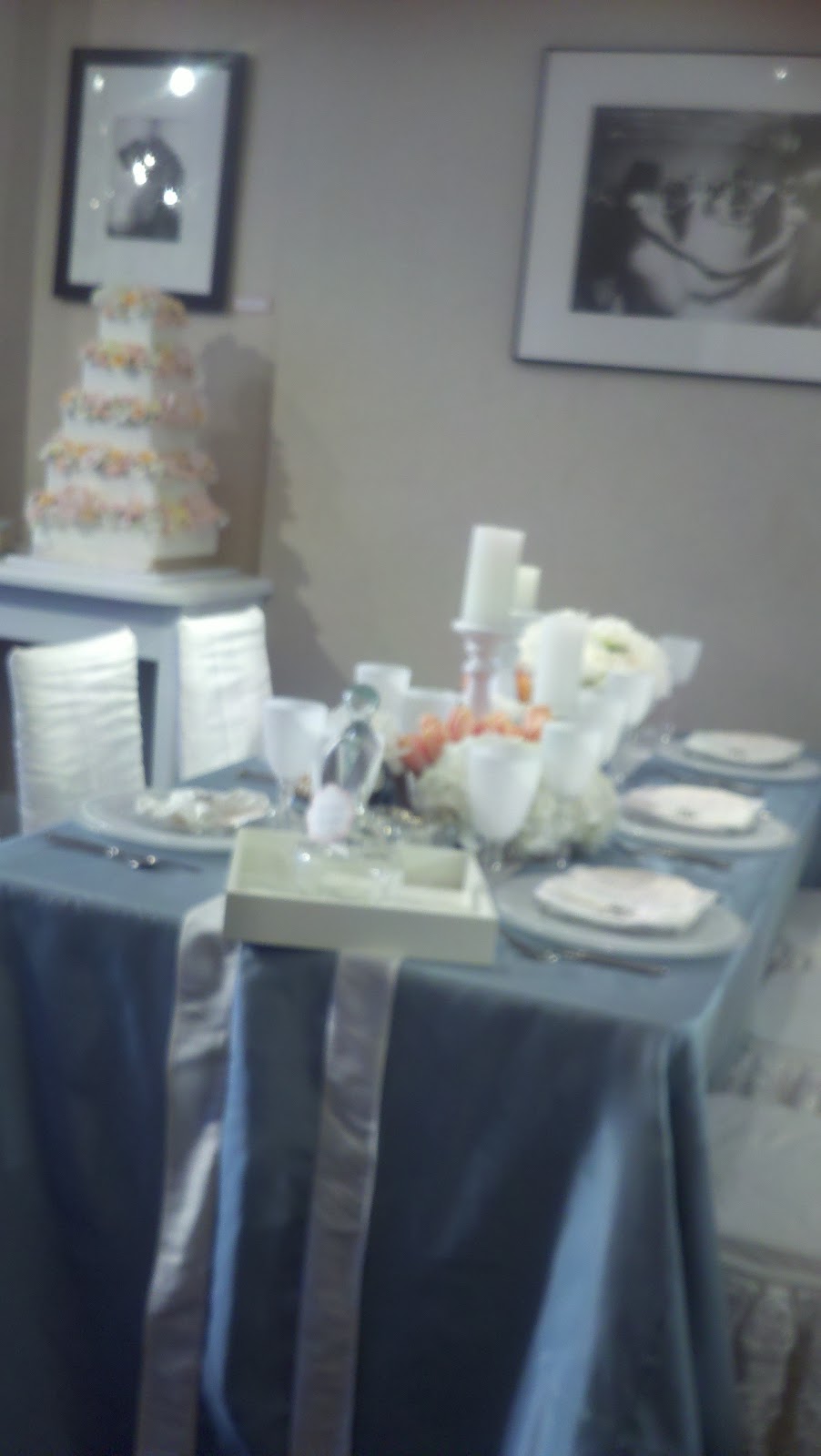 The Boston Bridal Lounge has been meeting tons of newly engaged couples since their opening on January 11, 2011. As we enter Spring and of course wedding season, it was time to bring in new decor and a lighter color palate. The masterminds behind the BBL, Kerri Esposito-Bruneau and Eleni Granas, wanted the decor to create the ambiance of summer romance. By using white, light blues, peaches, and soft pinks all three tables were reworked to show new design trends and tablescapes for any upcoming Spring and Summer events. We worked closely with Table Toppers and Be Our Guest to put together an eloquent table with some modern flare. Check it out!